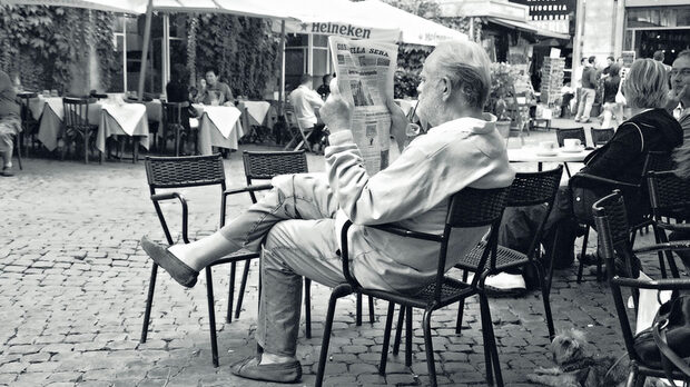 Всъщност и Caffe della Pace не е кафене в истинския смисъл на думата, по-скоро е бистро, в което повечето посетители висят от закуска до обяд или от обяд до вечеря. Или цял ден.