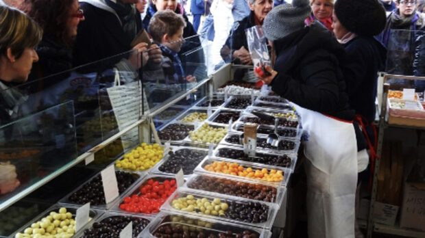 Улична храна: нугат, шоколадови трюфели, горещо какао, сладолед.