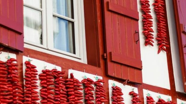 Къщите са "облечени" в гирлянди от червени чушки - реколтата суши 15 дни на слънце, после се дозасушава във фурна и се мели в прах. Пиперът с AOP от 2000 г. е мек към средно лют (около 4/10 по скалата Сковил) и често заменя черния пипер в баската кухня.