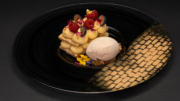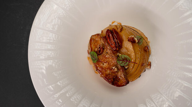 ADOR зимата не започва календара, а с първата искра в Josper-а. Точно там се ражда логиката на новото меню - огън, техника и сезонни продукти, подбрани така, че всяка чиния да носи повече ярки нови идеи: богато Миланезе ризото, поднесено като "ризото ал салто" с хрупкава коричка и сладко-кисел баланс; бели аспержи със сос карбонара и всички необходими елементи - конфитиран жълтък, чипс от гуанчале, пяна от пекорино; и интерпретация на фрикасе с охлюви от малка ферма край София. Но най-силната демонстрация на автора остава филето от морски език - сложна, многопластова композиция, превърната в един от подписите на кухнята.