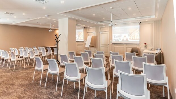 Нашата конферентна зала, с капацитет от 50 седящи места, е проектирана да бъде център за събития от висок клас, които обединяват бизнеса и културата. Благодарение на комбинацията от луксозно настаняване, модерна зала и първокласен ресторант, ние сме предпочитан партньор за редица организации.
