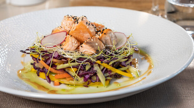 В основата на новото меню на Vienna Café & Restaurant стои страстта към истинските европейски вкусове и желанието всяка хапка да разказва история. Шеф Борислав Петров вярва, че кухнята е като пътешествие: "Всяко ястие трябва да те отведе на място, където вкусът става спомен." Всяка чиния е като малка сцена от централноевропейска приказка: салатите приветстват сетивата със свежи цветове и деликатни аромати, а рибните ястия носят усещане за фина свежест и деликатен баланс между аромати и фини вкусови нотки. И както във всеки добър разказ, след лекото начало идват и по-дълбоките вкусове, изкушаващи основни ястия като филе от сьомга със сос терияки, пюре от целина и зелена ябълка или класически рибай стек, а любителите на алпийската кухня могат да опитат ароматния раклет със спек, салам Милано и печени картофи.И докато хапките следват една след друга, усещането е, че всяка чиния разказва своя малка история: за пъстри европейски базари, за топлината на алпийска вечеря, за срещата на традицията с модерността. Така всяко посещение тук се превръща не в обикновен обяд или вечеря, а в едно истинско гастрономично изживяване, в което вкусът остава спомен.