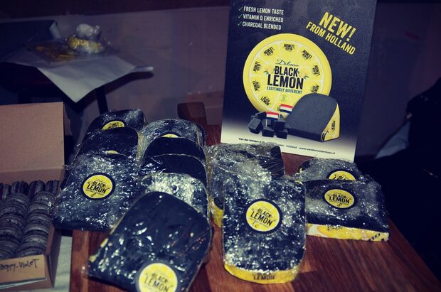 Черно сирене Dilano Black Lemon на холандската фирма Van der Heiden Kaas (vanderheidenkaas.nl), с вкус на лимон и черен пипер и обогатено с витамин D.